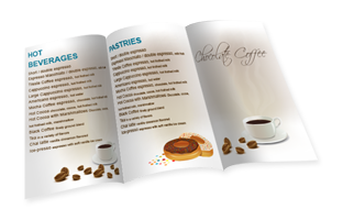 תפריטים בגודל A4 מתקפלים לשלוש במגוון צבעים עיצובים שונים
